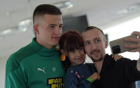 On September 3, the Miners Anatolii Trubin and Artem Bondarenko visited Shakhtar Shelter Centre at Arena Lviv. People from various regions of Ukraine suffered from hostilities have been finding a temporary shelter here for five months already. Players spoke to the internally displaced persons, expressed support and made a little photo session with everyone interested.