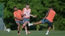 Ранкове заняття мало втягувальний характер: спочатку гравці разом з тренерами із фізпідготовки виконували фітнес-вправи просто на футбольному полі, де отримали навантаження на всі групи мʼязів. Далі на команду чекало багато різноманітної бігової роботи, а також гра на тримання мʼяча в традиційних квадратах.