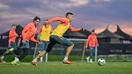 Вечірнє тренування було більш традиційним. Розпочавши з розминки, далі команда працювала над триманням мʼяча у квадратах, ігровими і тактичними елементами. За власною програмою в цей час займалися голкіпери під орудою Емраха Каракована та Андрія Пятова. На завершення сесії вже всі разом грали на пів поля.