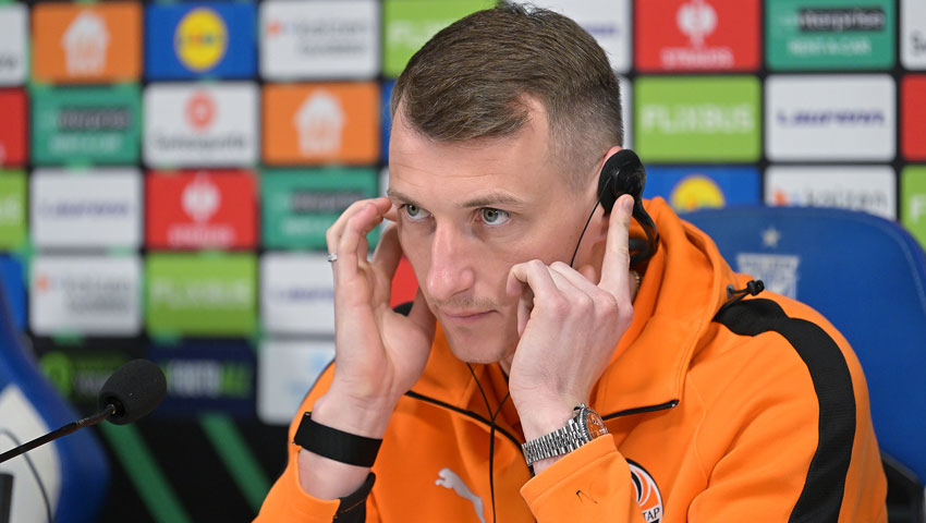 Голкіпер «Шахтаря» Дмитро Різник відповів на запитання журналістів на пресконференції перед матчем з «Лехом»